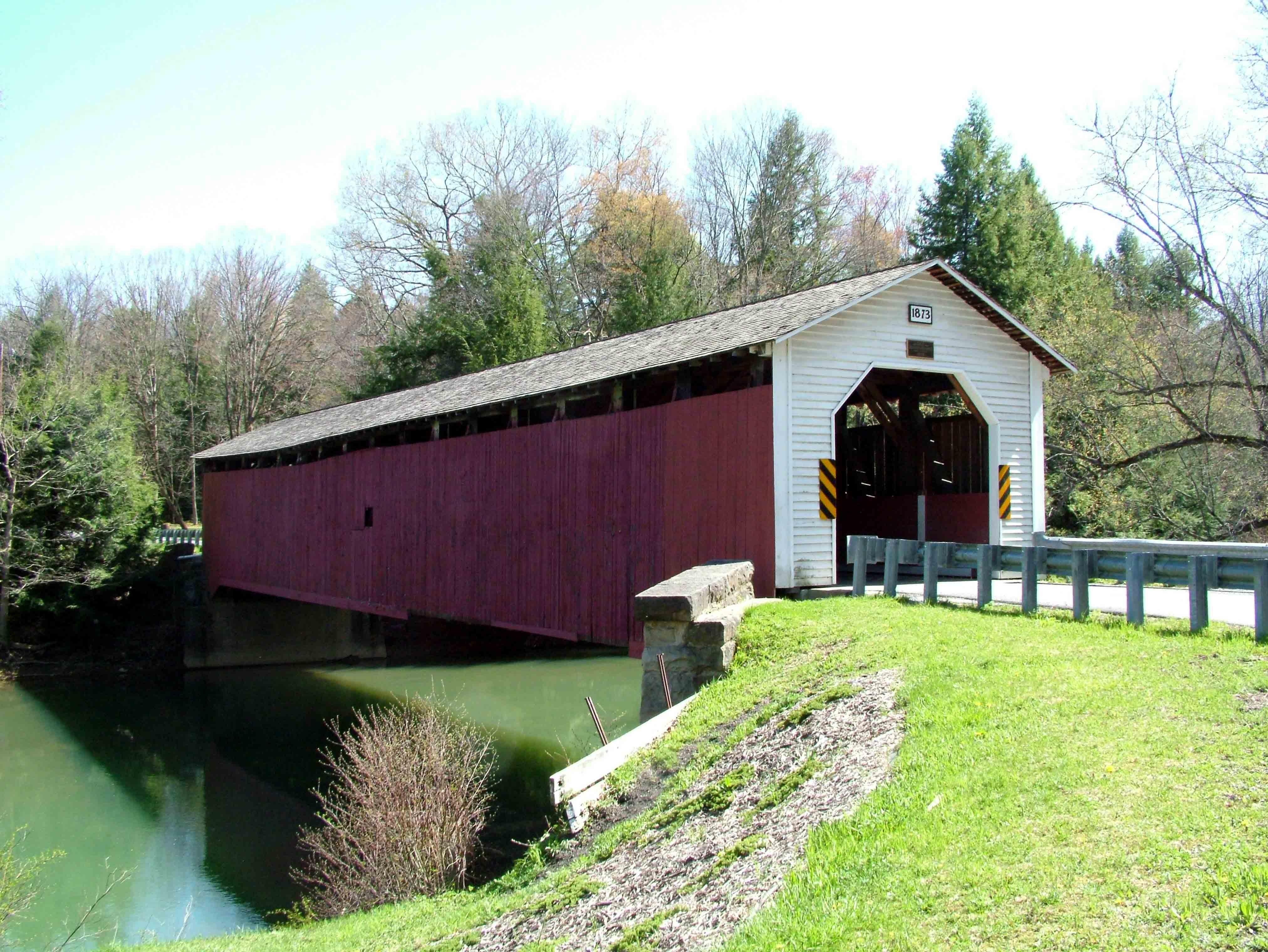 This Bridge is the only covered bridge crossing the mighty Susquehanna River and the only one still being used in Clearfield County. The 122 ft. single span Burr arch truss bridge was built in 1873 by Thomas A. McGee. Thomas built the bridge using hand hewed white pine timbers from the area and at a cost of $175. It was the last covered bridge built in Clearfield County. Thousands of rafts floated under the bridge including the last raft in 1938. The bridge was listed on the National Register of Historic Places in 1980 and renovated in 1994 after a collapse caused by record-breaking ice and snow. This scenic spot remains one of the most popular photographic attractions in Clearfield County and is also located at the very beginning or end of the West Branch Susquehanna Byway.